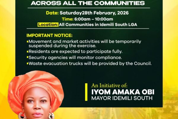 By Izunna Okafor, Awka The Idemili South Local Government Area has announced plans to carry out a comprehensive environmental sanitation and drainage desilting exercise across all communities within its jurisdiction as part of proactive efforts to mitigate flooding and promote a cleaner environment ahead of the rainy season. The Mayor of the Local Government,…
