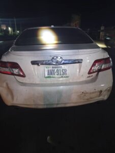 In a related development, SP Ikenga disclosed that operatives attached to Okpoko Division recovered an abandoned white Toyota Camry Spider with registration number AWK 91 SR along the Onitsha–Owerri Road, opposite Tiger Fruit Company, on the same date. He said another plate number, Delta 06A 90 DT, was discovered inside the vehicle during the search. The car, he added, has been moved to the station for safekeeping, pending identification and collection by the owner.