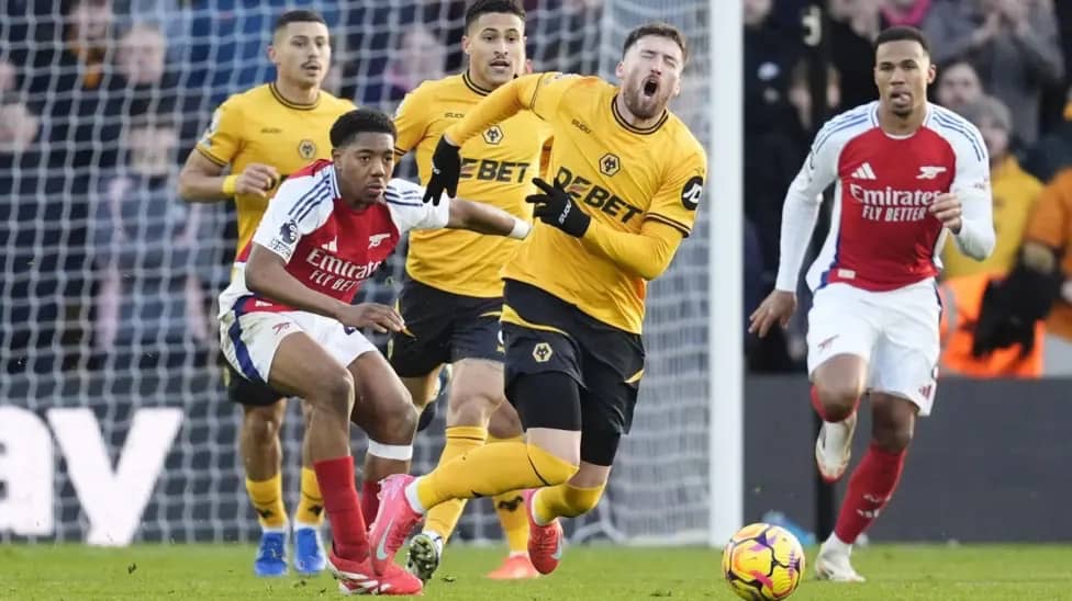 Wolves midfielder Joao Gomes was sent off later in the match after receiving a second yellow card, before Arsenal defender Riccardo Calafiori scored the only goal.