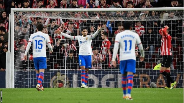 Athletic’s game plan worked to a point, denying Barcelona clear openings, but they were unable to pose any serious threat when they did get the opportunity to break.