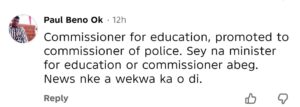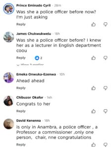 Similarly, other social media users, reacting from different angles, asked who now occupies the office of the Commissioner for Education in Anambra State, as Prof. Chuma-Udeh was perceived in some quarters as having “joined the Police” or “fully transited into police work” following the announcement of her promotion.