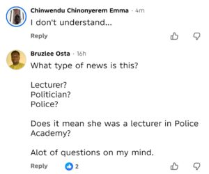 Furthermore, there was also confusion about whether the promotion implied a replacement or reshuffling within the State Executive Council, even as some commenters speculated that she might have resigned her commissionership position to pursue a policing career.